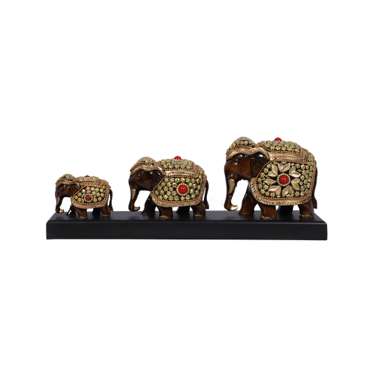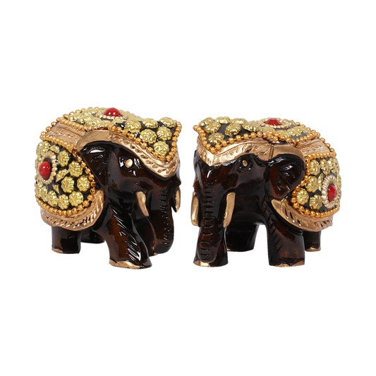 Intricate Wood Elephant Brass Filling Set