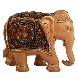 | This beautifully crafted wooden elephant sculpture showcases intricate floral carvings on its back, highlighted with golden accents. The detailed artistry brings out the elegance and regal nature of the piece, making it a perfect decorative addition to any room, be it the dining room, drawing room, or office. Symbolizing prosperity, loyalty, and solidarity, this sculpture not only enhances the aesthetic appeal of your space but also carries a rich cultural significance. It serves as an ideal gift, representing good fortune and positive energy. |