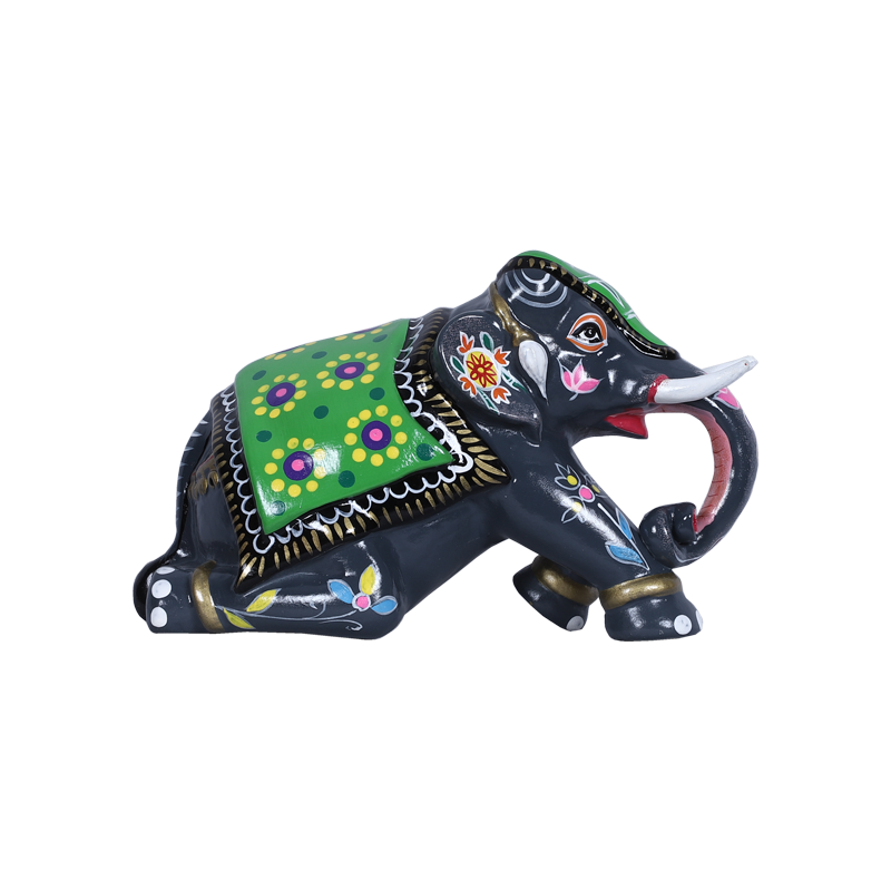 This beautiful clay elephant hand carving for home decor is traditionally handcrafted and features a trunk-down design that adds a royal touch to your home with its antique charm. Intricately hand-painted by professional artisans, this clay wall hanging is perfect for ceiling or decorative use. It is a valuable collectible that enhances the decor of homes, offices, hotels, and temples. This elephant decorative item is ideal for wedding gifts, anniversaries, housewarmings, birthdays, new ventures, award ceremonies, Diwali, and other festivals.