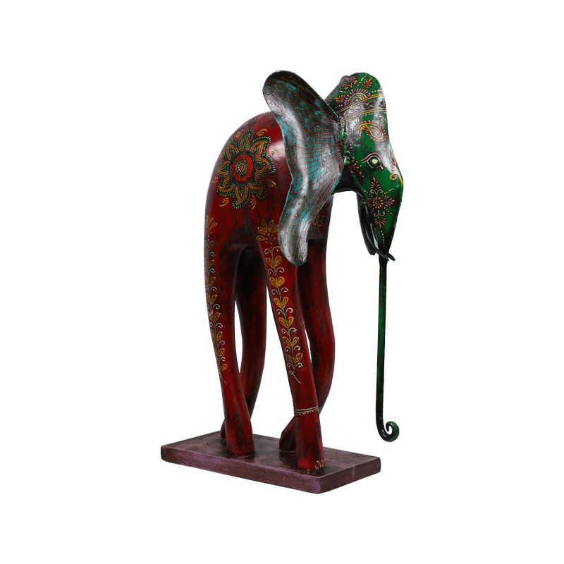 Handcrafted Wood and Metal Elephant with embossed artwork adds elegance to any room. This piece symbolizes mental strength and awakening, making it an ideal housewarming gift.
