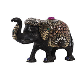 This stunning aluminum elephant is adorned with intricate golden jewelry work, adding a touch of opulence to its beauty. An excellent choice as a gift for women, its golden detailing is sure to captivate and enchant. The unique craftsmanship of this souvenir, resembling jewelry, enhances the elephant's allure, mirroring how jewelry completes a woman's look. Symbolizing good luck and fortune with its trunk up, this elephant brings a sense of positivity and prosperity.