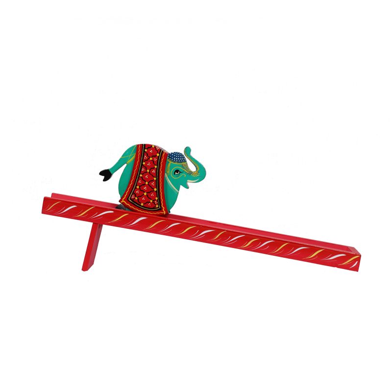 A unique moveable wooden elephant display on a vibrant platform. Perfect for entertaining toddlers or adding a playful touch to your décor. This masterpiece brings positive energy and is highly auspicious in Hindu and Buddhist cultures