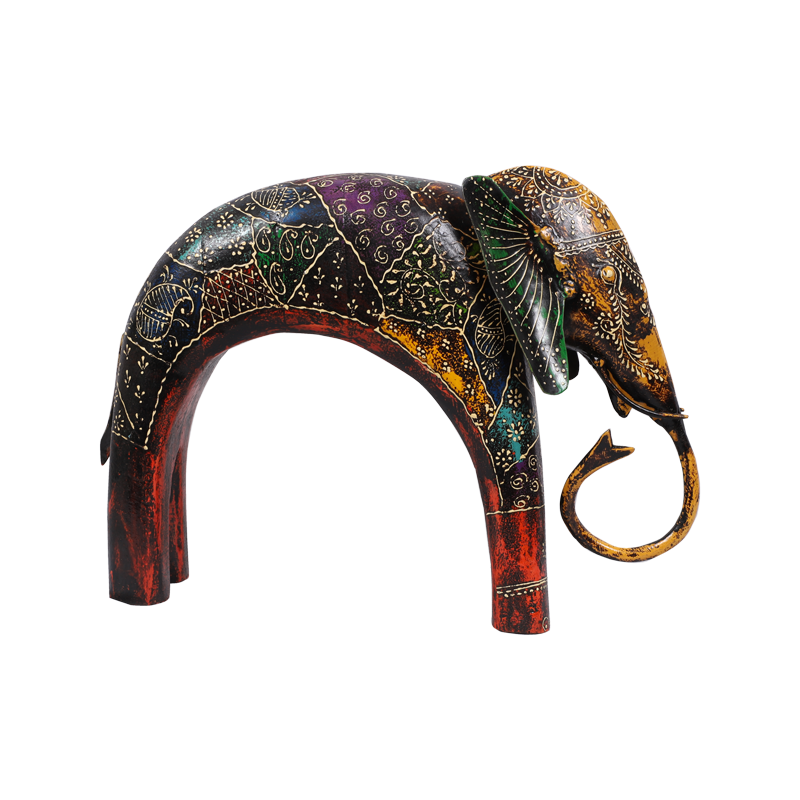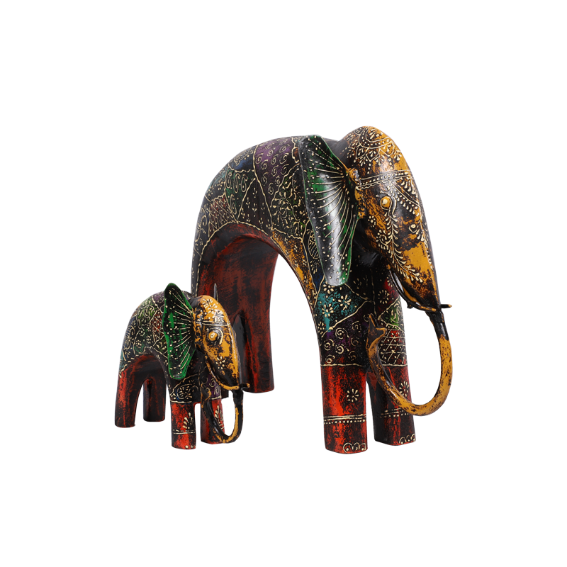 The Wooden Elephant with Metal Baby Set showcases excellent paintwork and a metal mask, symbolizing knowledge and power. It’s an ideal piece for home décor and a perfect gift for housewarming events.